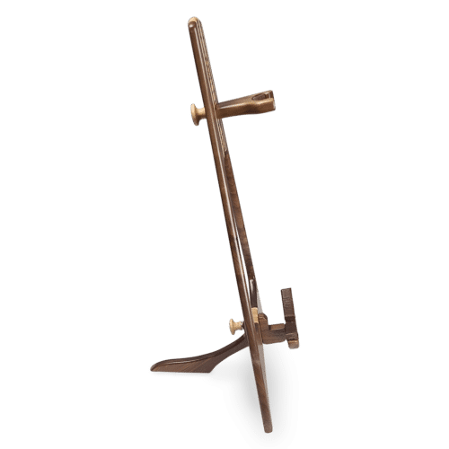 instrument. All stands are handmade with attention to selecting wood with the most character to highlight the beauty of the wood. Each stand is unique because of the natural variations of the wood, so each stand will be a one-of-a-kind. All frames are assembled with wood tenons and sealed with 5 coats of oil and urethane for luster and protection. All units ship flat for safety and assembly is tool-free and take minutes. These stands are meant for indoor use and should not be used outside or in damp environments. Lead time for this stand varies, some are in stock for shipment within days.