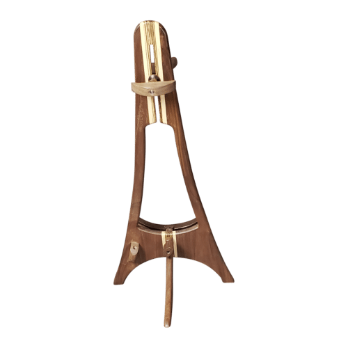 Handcrafted Wisconsin Hardwood Violin/Viola stand crafted from locally harvested Walnut with Zebrawood and Maple Accents. This Table Top stand is designed to beautifully present and safely support your prized instrument. The neck support is height adjustable up to 6 inches to allow for the best place to rest your instrument, and lower support arc firmly holds Violin/Viola bodies. Support cups on the bottom and recessed rest at top discreetly hold your bow. Contact areas are covered in glove soft leather with deep foam padding to cushion your instrument. All stands are handmade with attention to selecting wood with the most character to highlight the beauty of the wood. Each stand is unique because of the natural variations of the wood, so each stand will be a one-of-a-kind. All frames are assembled with wood tenons and sealed with 5 coats of oil and urethane for luster and protection. All units ship flat for safety and assembly is tool-free and take minutes. These stands are meant for indoor use and should not be used outside or in damp environments. Lead time for this stand varies, some are in stock for shipment within days.