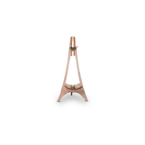 Handcrafted Wisconsin Hardwood Ukulele/Mandolin stand crafted from locally harvested Cherry wood with bloodwood and yellowheart accents. This stand is designed to beautifully present your prized Ukulele or Mandolin. The neck support is height adjustable up to 5 inches to allow for the best place to rest your instrument, and lower support arc firmly holds bodies. Contact areas are covered in glove soft leather with deep foam padding to cushion your instrument. Each stand is unique because of the natural variations of the wood, so this stand is a one-of-a-kind. Assembled with wood tenons and sealed with 5 coats of oil and urethane for luster and protection. Ships flat for safety and assembly requires only a Philips head screwdriver and takes minutes. These stands are meant for indoor use and should not be used outside or in damp environments. In stock.
