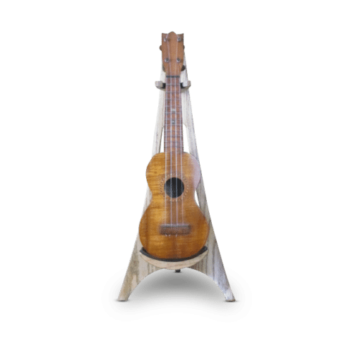 Handcrafted Wisconsin Hardwood Ukulele stand crafted from locally harvested stained White Oak. This stand is designed to beautifully present your prized Ukulele. The neck support is height adjustable up to 6 inches to allow for the best place to rest your instrument, and lower support arc firmly holds Ukulele bodies. Contact areas are covered in glove soft leather with deep foam padding to cushion your instrument. All stands are handmade with attention to selecting wood with the most character to highlight the beauty of the wood. Each stand is unique because of the natural variations of the wood, so each stand will be a one-of-a-kind. All frames are sealed with 5 coats of oil and urethane for luster and protection. Assembly is tool free. These stands are meant for indoor use and should not be used outside or in damp environments. Lead time for this stand is typically 2 weeks from the date of order to shipment.